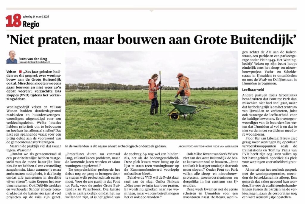 MEDIA – Bas Koppes van de VVD vond tijdens een verkiezingsdebat dat er maar eens gebouwd moet gaan worden aan de Grote Buitendijk na zes jaar praten. PvdA raadslid Onika Pinkus noemt het getal van 350, ze schroomde niet om dat ‘door te trekken’ naar 600. En ook Milko Kwant van Sterk Velsen wil daar…